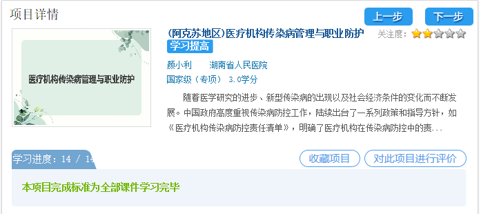 学习卡使用说明:可申请《(阿克苏地区)医疗机构传染病管理与职业防护》、《(阿克苏地区)弘扬医学人交精神,助力健康中国发展》项目。